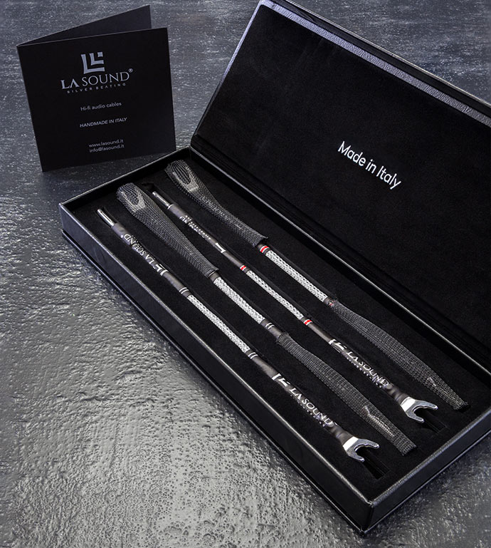 Made of 21 AWG solid core conductors in pure silver (99,99% 4N) they are insulated with Teflon.